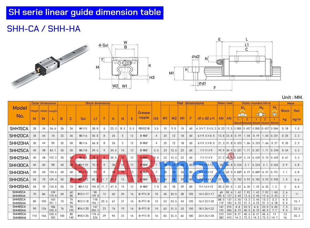 STARmax มี Linear Guide หลากหลายขนาด เช่น SHH15CA SHH20CA SHH20HA SHH25CA SHH25HA